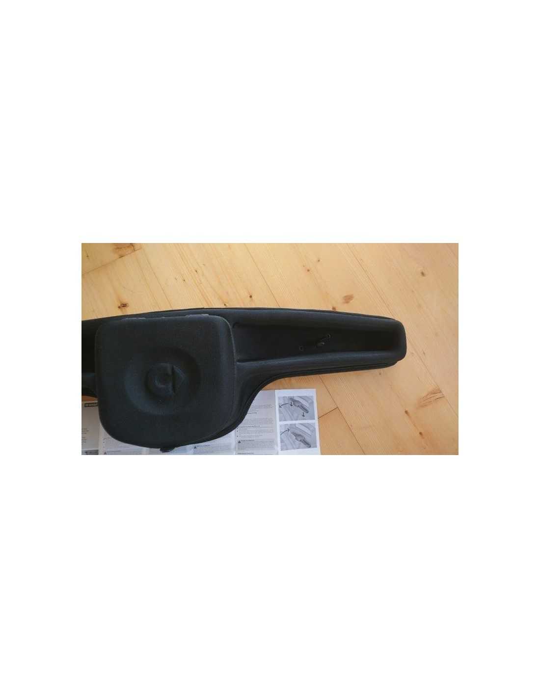 Material: Thermomoulded (as used for roadster bags). The storage box is shaped to fit into the horizontal area behind the seats (in front of the soft top mechanism), unrestricted use with open roof, too. Secured to the vehicle's carpet by means of Velcro strip. Storage compartments (incl. rubber cord) on left and right as additional fixation in case of a crash.