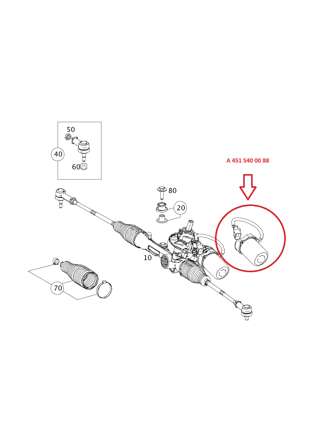 Tie Rod Steering Rack for Smart ForTwo 451M12X1.5, 377 mm suitable for left and right side Sold individually.