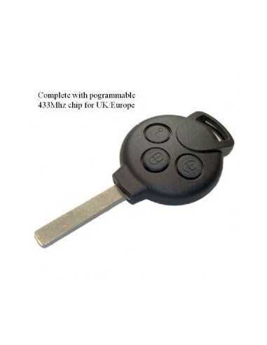 Smart ForTwo 451 Clé télécommande de remplacement à 3 boutons La télécommande à trois boutons noire est livrée avec l'électronique et une lame vierge