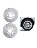 Dischi freno decorativi universali. Possono essere facilmente installati sulla maggior parte delle auto con tamburi freno. Realizzati in alluminio e simili a quelli originali. Si adattano a cerchi di almeno 14 pollici.